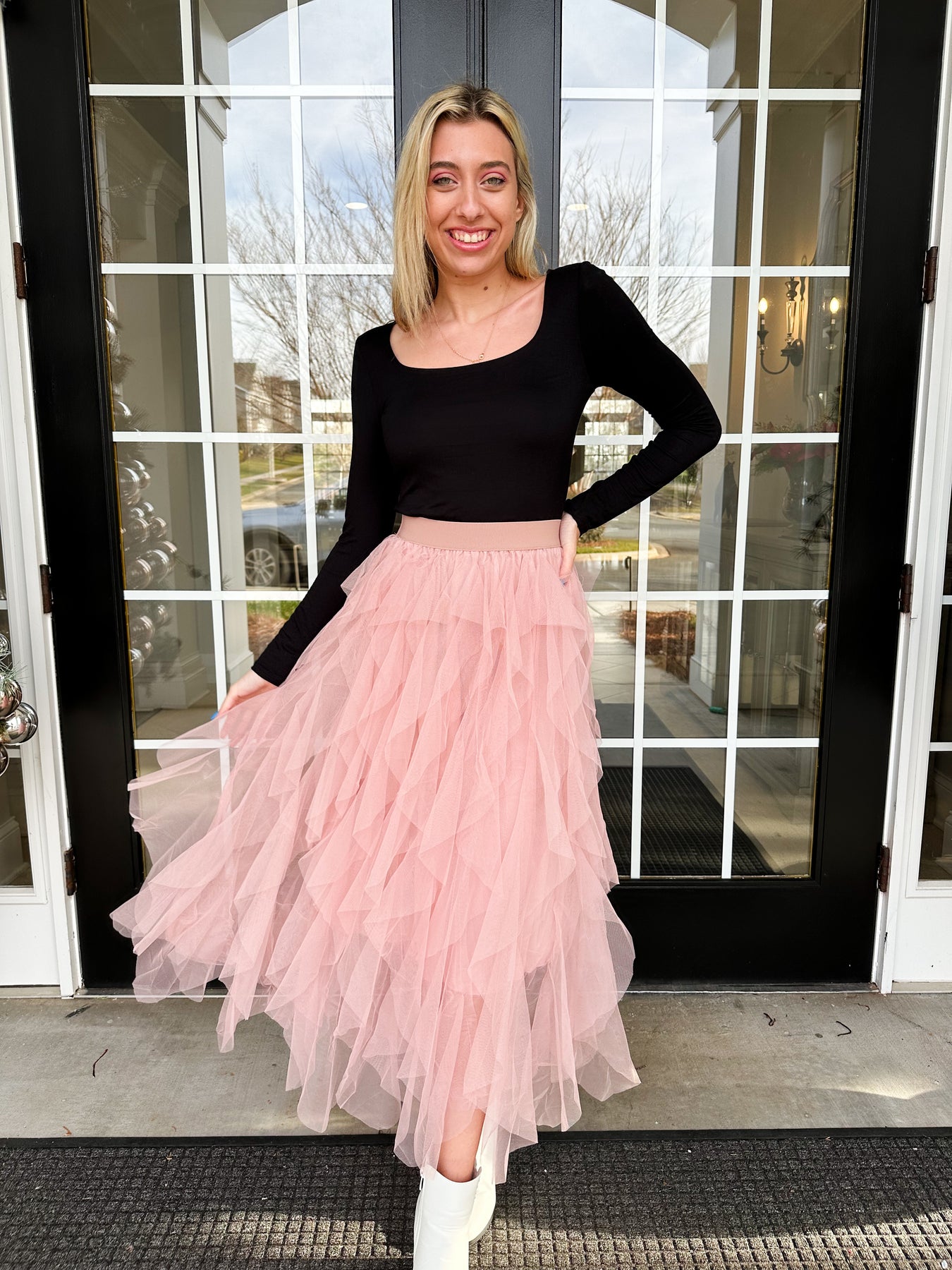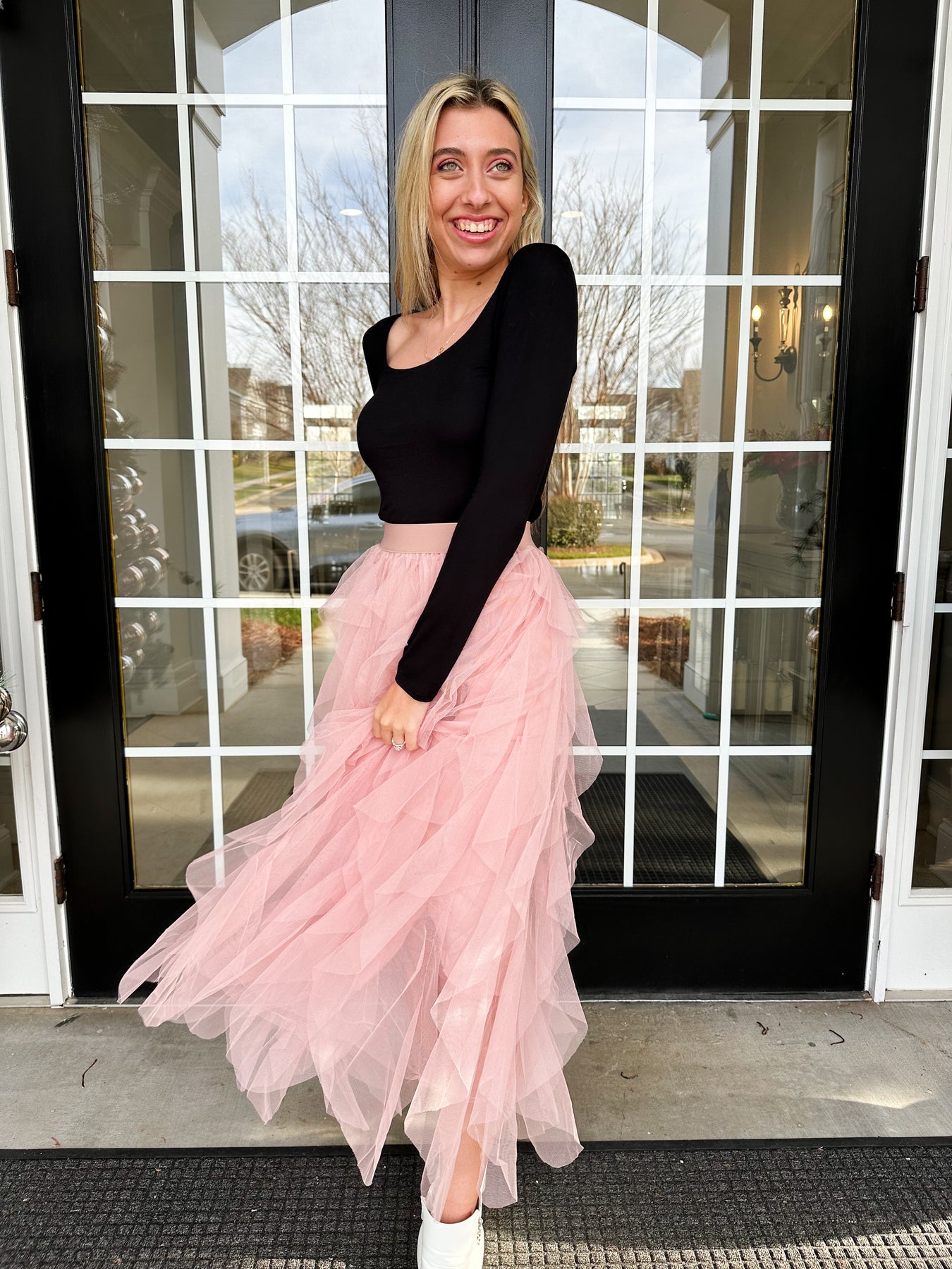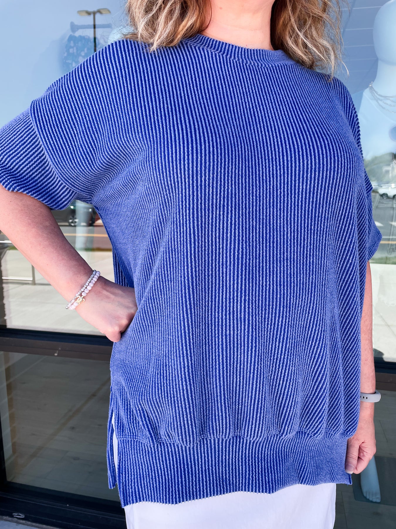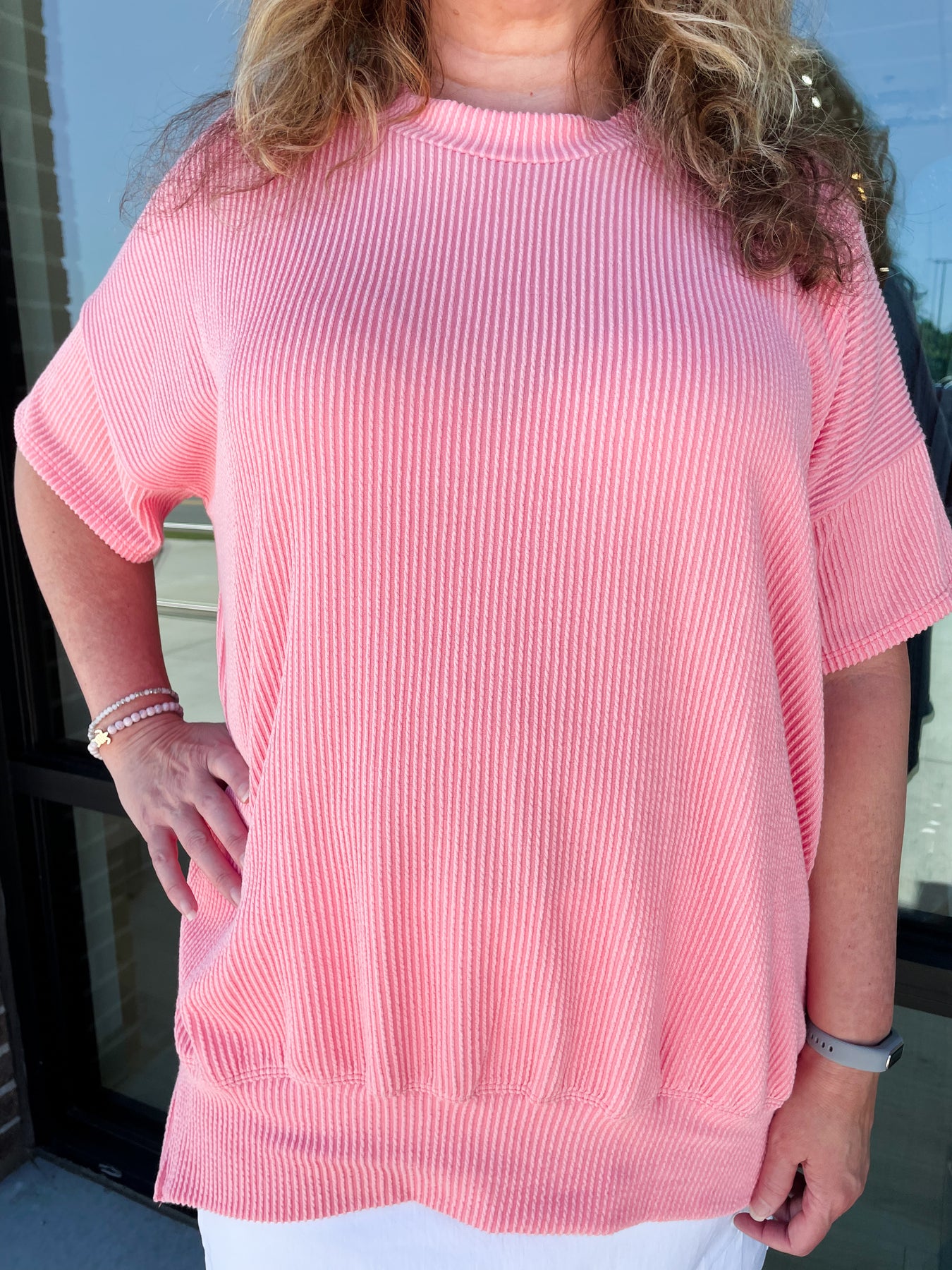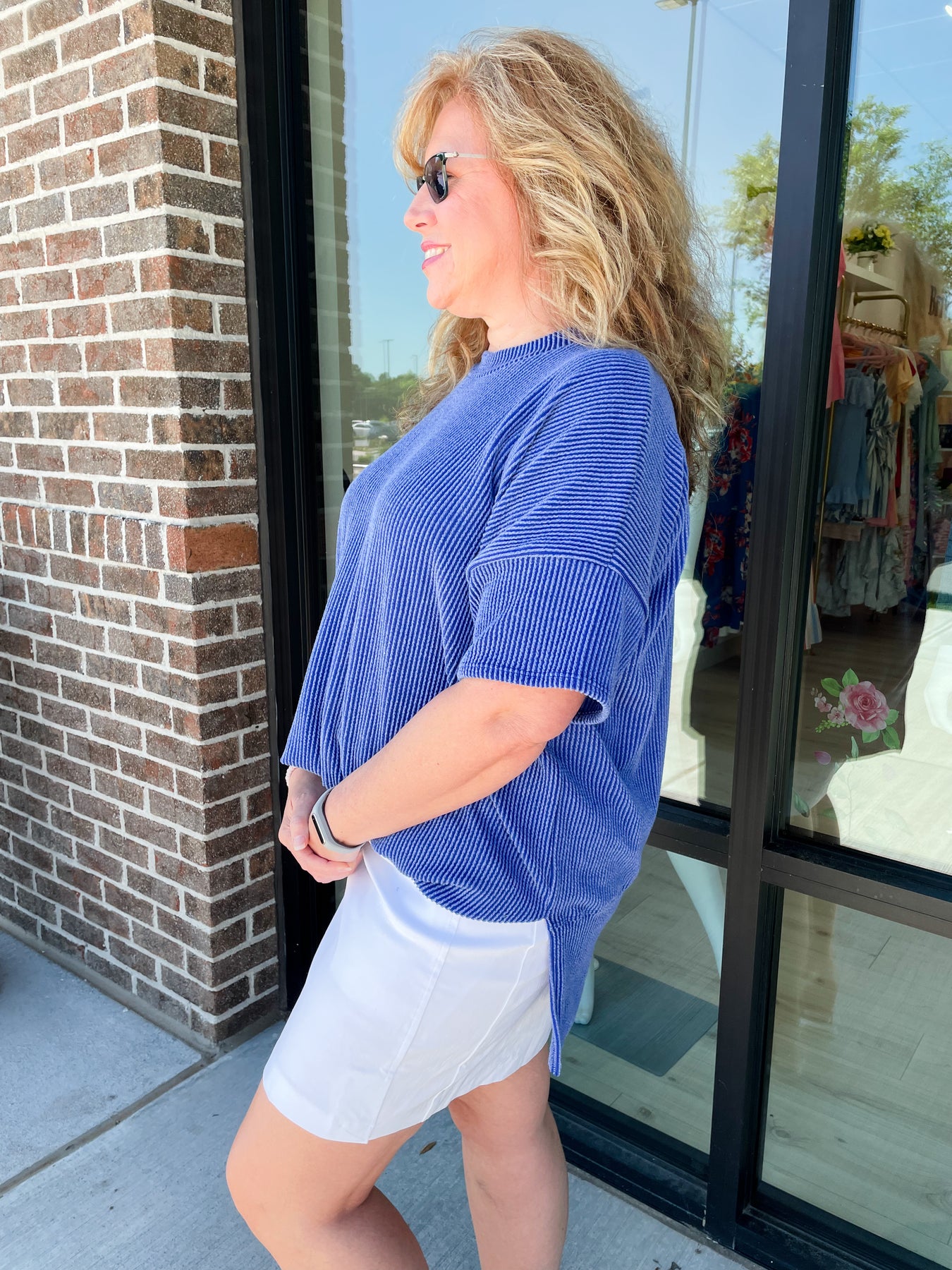 Val is 5'6" wearing a size M which her size is usually a Large in oversized tops.