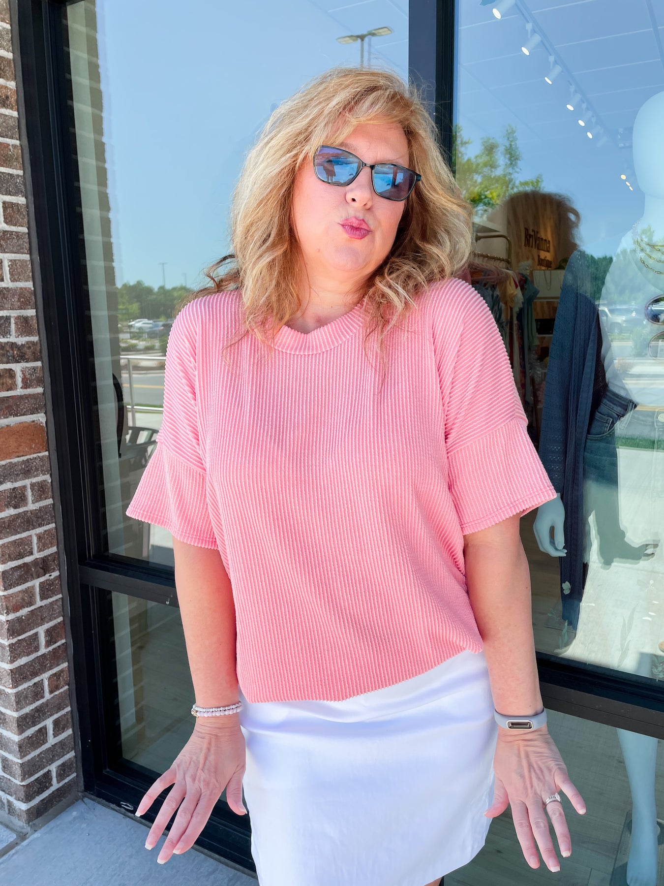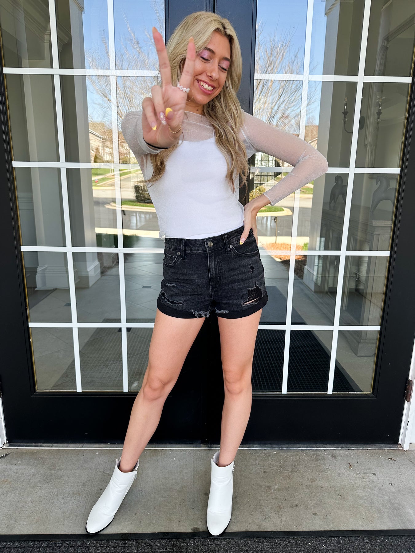 Risen Brand Alert! How cute are these two tone shorts?!? Super fun for summer! Great to bring on any upcoming vacays. Pair it with your favorite top and shoes! Stretchy denim and soft material!