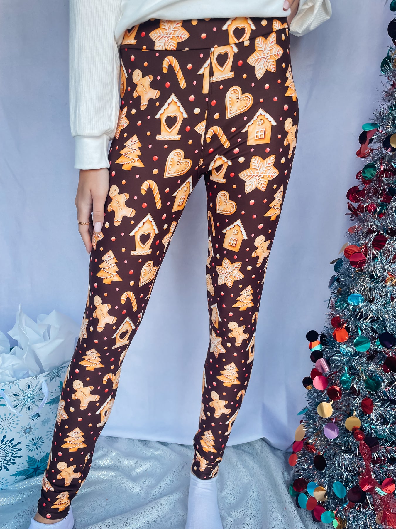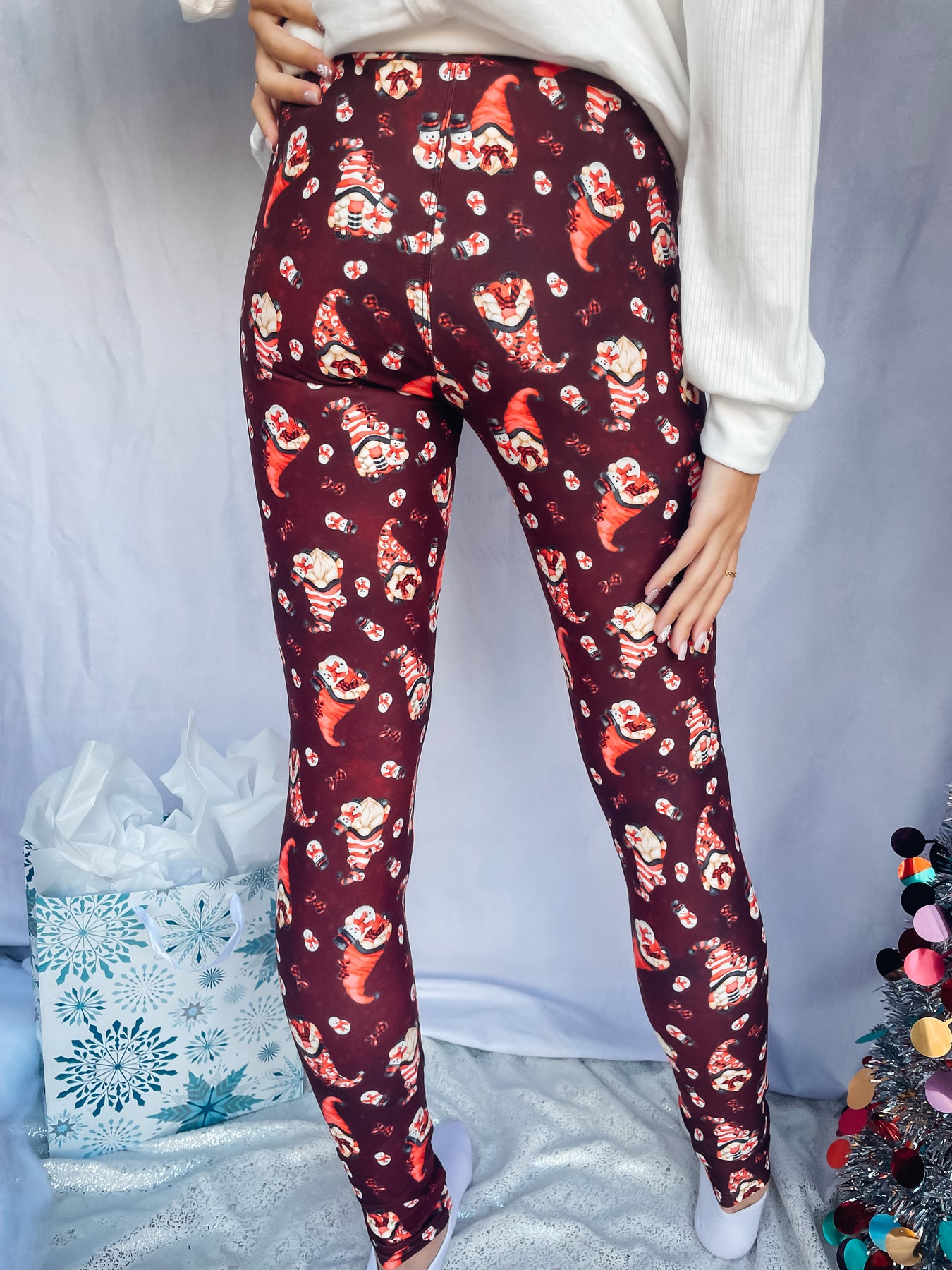 You need these cute holiday leggings! Super soft and stretchy! If you love to be comfy, then these are perfect for you! It has the cutest gingerbread print and gnomes throughout the leggings!